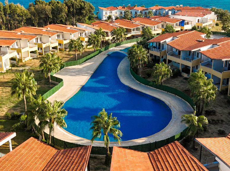 Yetişkinler ve çocuklar için tasarlanan, bölgenin en büyük havuzuna sahip tatil sitemiz; şezlongları, gölgelikleri ve havuzbaşı dinlenme alanlarıyla fark yaratıyor.
